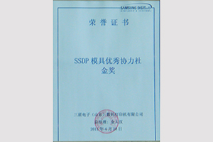 青島三巨電子部件有限公司獲得三星電子(山東)數(shù)碼打印機(jī)有限公司SSDP模具優(yōu)秀協(xié)力社金獎(jiǎng);